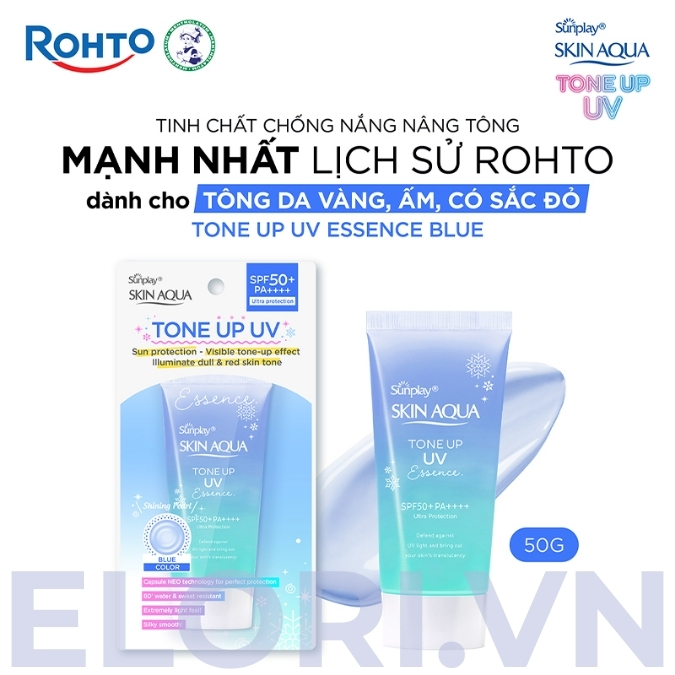 Kem Chống Nắng Skin Aqua Xanh – Tone Up UV Essence Blue là một sản phẩm nổi bật đến từ thương hiệu Sunplay, thuộc tập đoàn Rohto-Mentholatum của Nhật Bản, ra đời từ năm 1899. Với định lượng 50g, sản phẩm này không chỉ bảo vệ da khỏi tia UV mà còn mang lại hiệu ứng nâng tông tự nhiên, phù hợp với nhu cầu làm đẹp hàng ngày. Được thiết kế với công thức dịu nhẹ, không chứa cồn, paraben và dầu khoáng, Kem Chống Nắng Skin Aqua Xanh – Tone Up UV Essence Blue đã nhanh chóng chiếm được cảm tình của nhiều người dùng, đặc biệt tại thị trường châu Á, nhờ khả năng kết hợp giữa chống nắng và hiệu chỉnh sắc da.